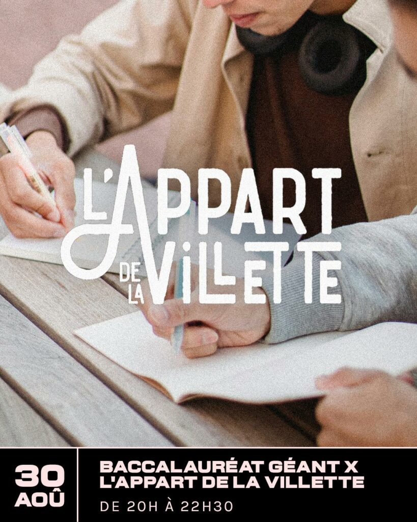 Baccalauréat Géant – L’Appart de la Villette x Boom Boom VilletteSamedi 30 août – 20h à 22h30 L’Appart de la Villette revient au food court le plus hype de Paris, …