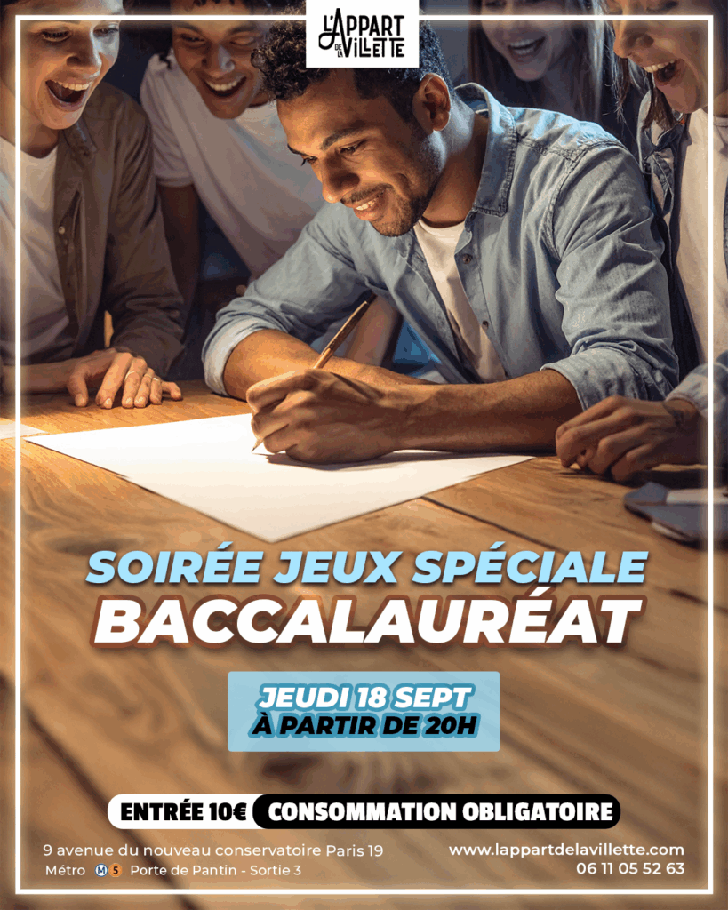 Baccalauréat Géant à L’Appart de la Villette Jeudi 18 octobre à 20h Venez tester vos réflexes et votre culture lors d’un baccalauréat grandeur nature !Que vous veniez seul·e ou entre …