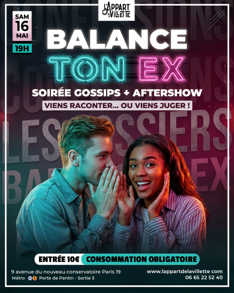 Balance ton ex – Storytimes & Gossip Night 🔥💔 👉 Balance ton ex, c’est le rendez-vous où tout se dit (ou presque).Tu montes sur scène et tu racontes ton pire …