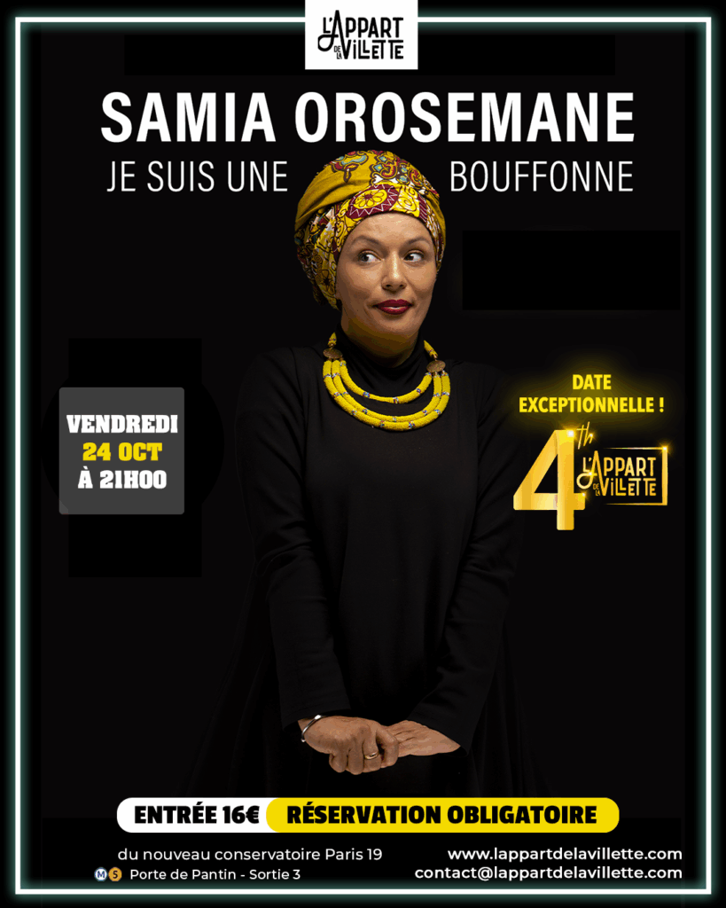 À propos Après avoir tourné dans 18 pays différents, Samia Orosemane revient avec son spectacle : “Je suis une bouffonne !” Elle vous raconte toutes ses aventures et fait le …