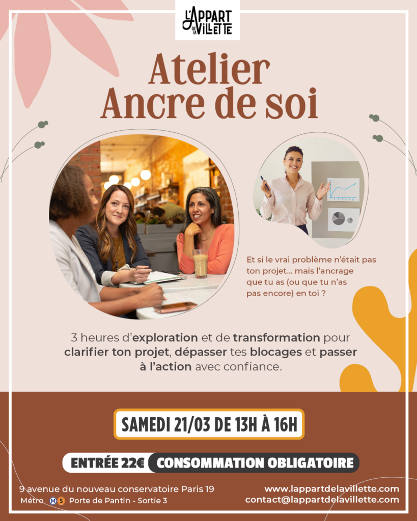 L’atelier “Ancre de soi” arrive le 21 mars de 13h à 16h à L’Appart de la Villette !