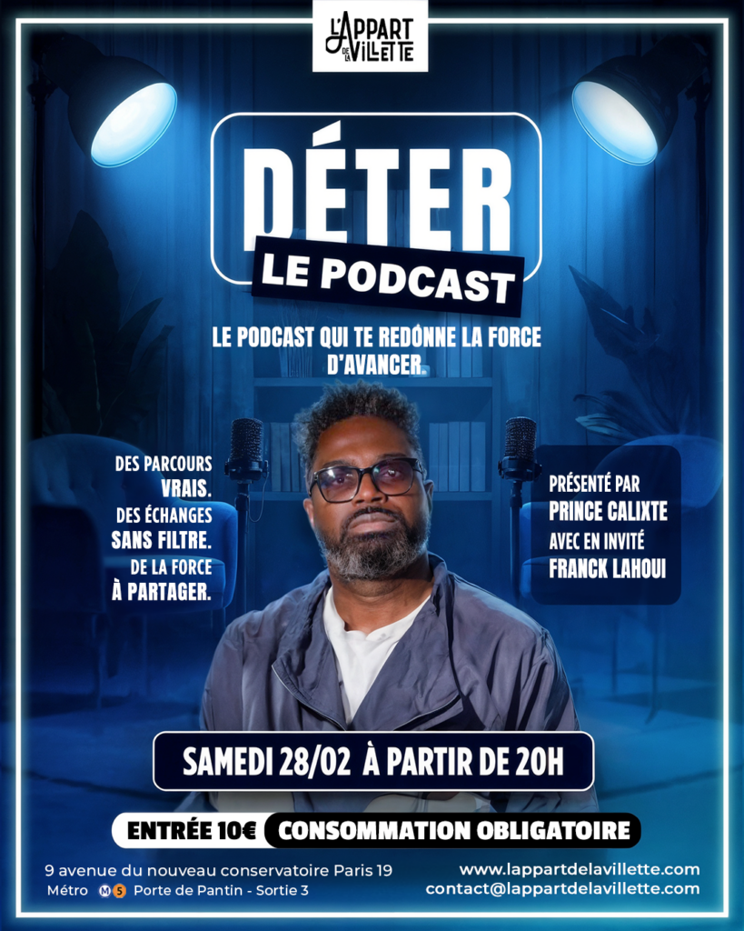 Déter, le podcast présenté par Prince Calixte – chef d’entreprise, entrepreneur et créateur de l’Appart de la Villette – revient pour une nouvelle session en public.