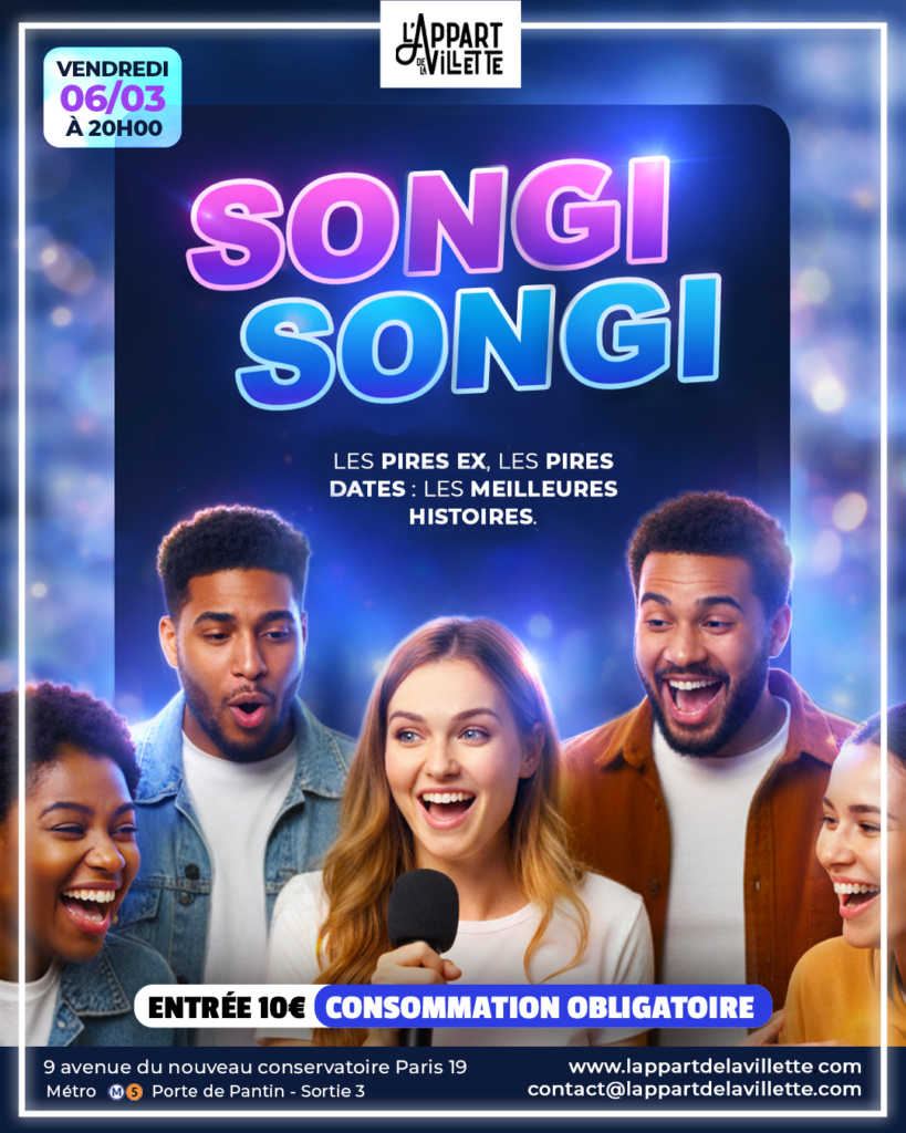 🎤 SONGI SONGI – La soirée des pires ex & dates catastrophiques Tu as un ex toxique ?Un date tellement gênant que tu as encore honte ?Une belle-famille sortie tout …