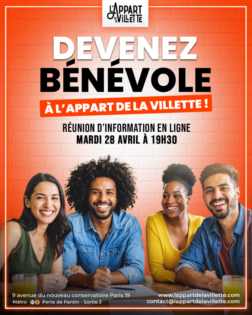 L’Appart de la Villette recrute des bénévoles pour participer à l’organisation de nos événements (bar, service, hôtesse, billetterie, etc.).