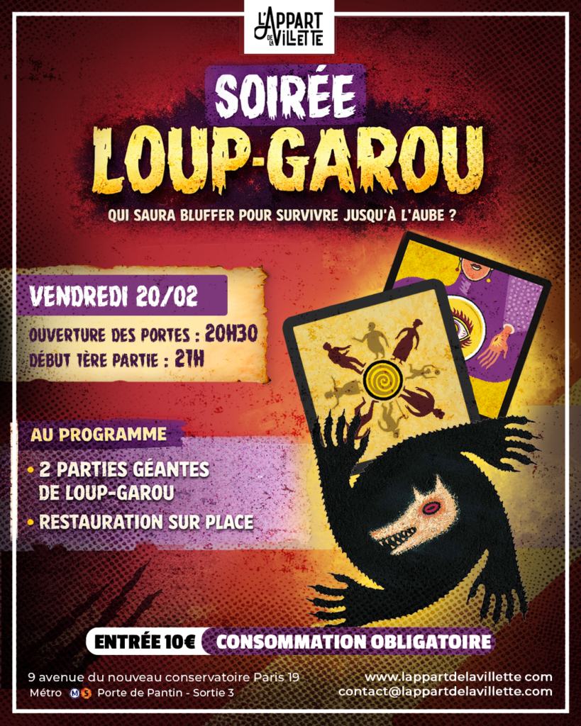 Plongez dans l’univers mystérieux et captivant de Thiercelieux lors de cette soirée spéciale Loup-Garou! Une ambiance conviviale, des stratégies malignes, et des éclats de rire garantis autour d’un jeu où la méfiance règne et les alliances se créent… ou se brisent !